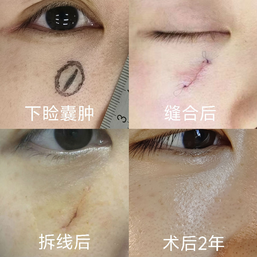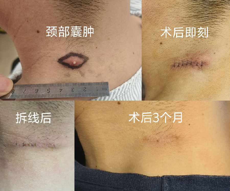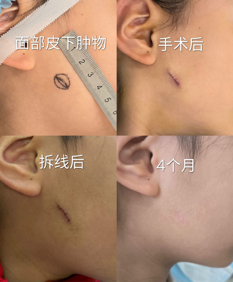 皮肤囊性肿块绝大部分终归需要手术切除,因此,在较小的时候尽早手术治疗才能让瘢痕最短小,而不是肿大到不可不手术了才想向老天求后悔药。