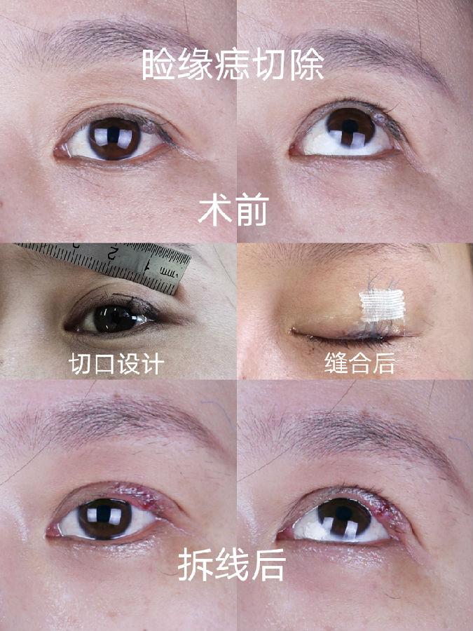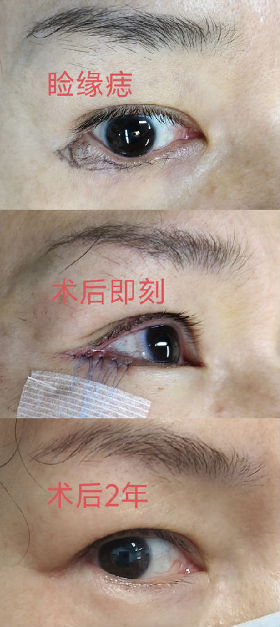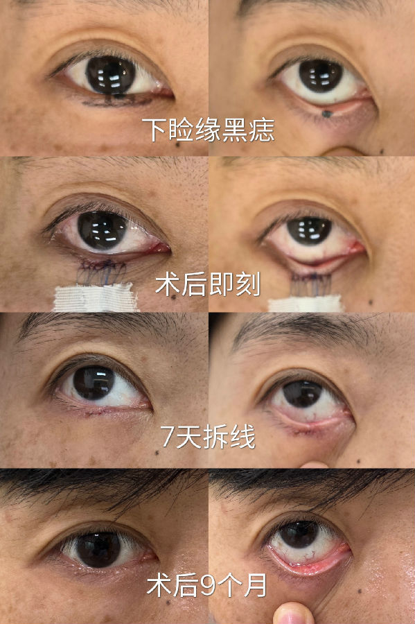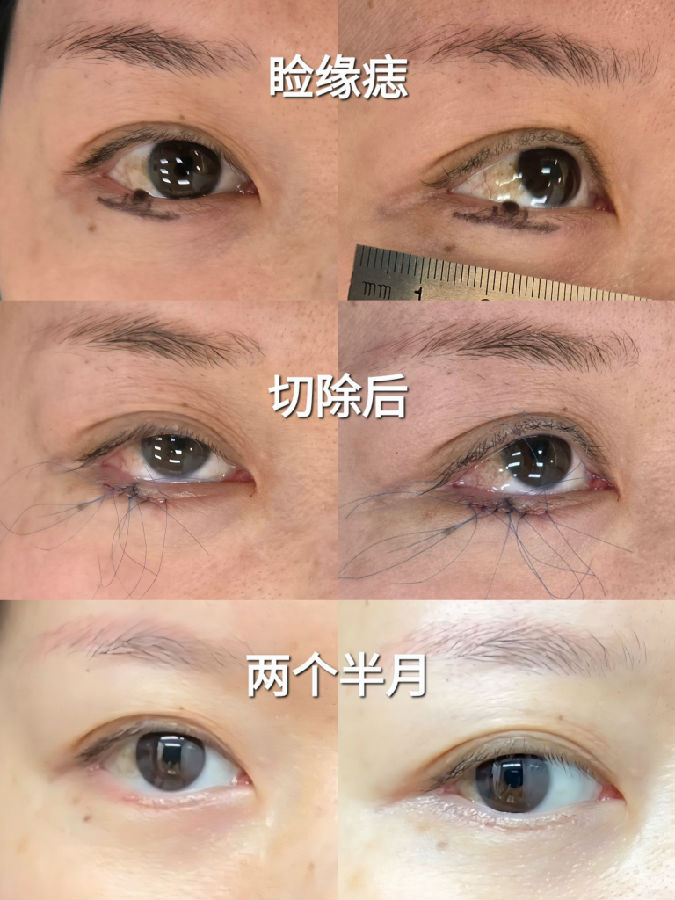 眼睑边缘的黑痣,一般都会缓慢增大,会影响视野,又不美观,建议尽早处理。手术中大部分病例需要行临近皮瓣修复,虽然切口较长和复杂,但最终瘢痕并不太明显。