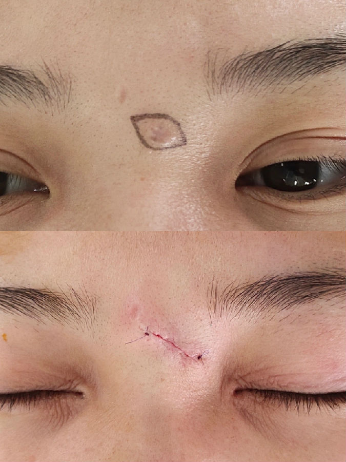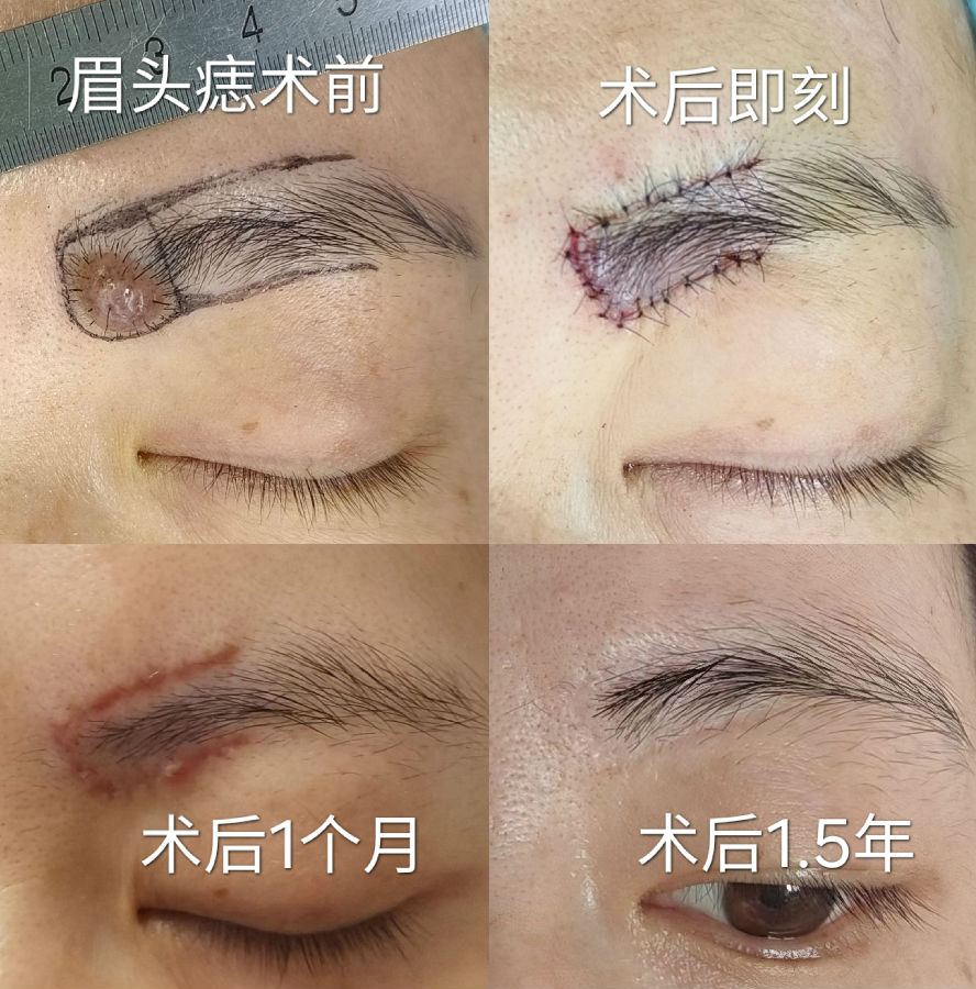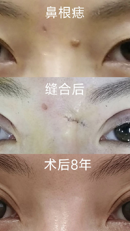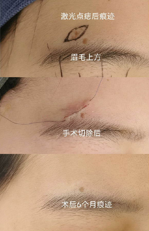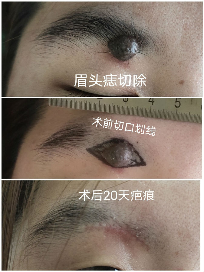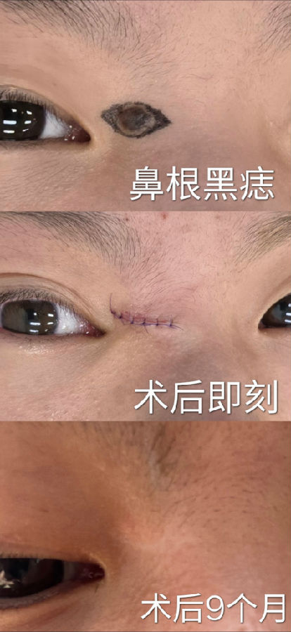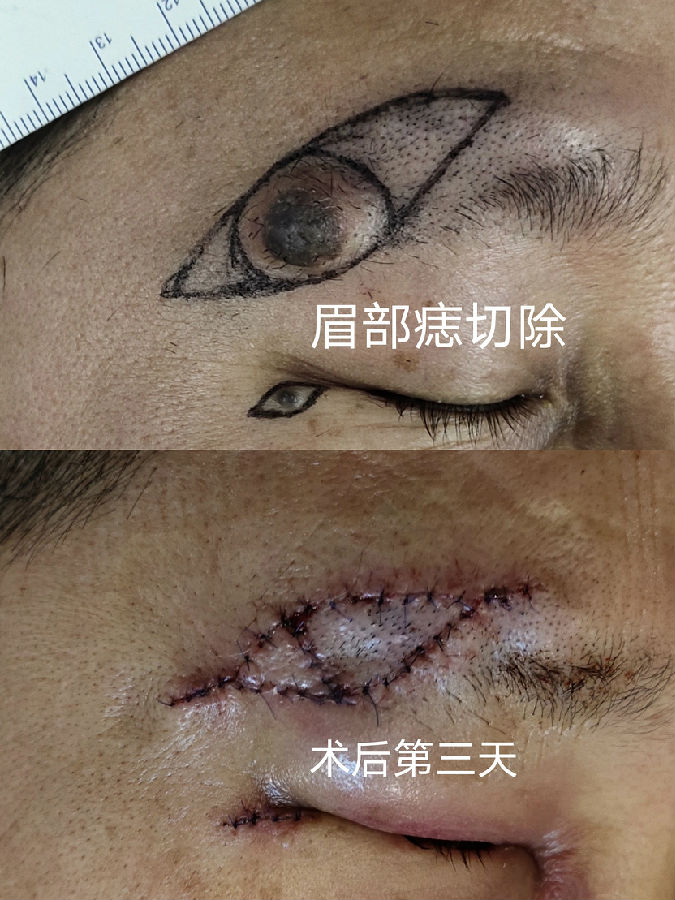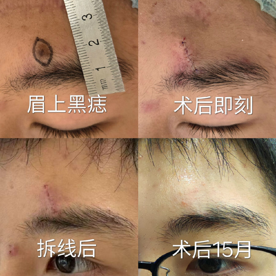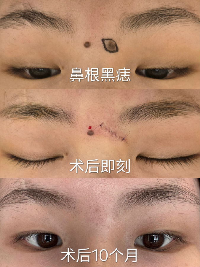 眉毛眉间上睑和印堂区域的黑痣常常生长较快,到三四十岁以后都比较大,影响美观,建议越小切除越不嫌早。