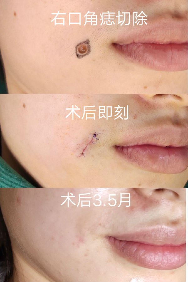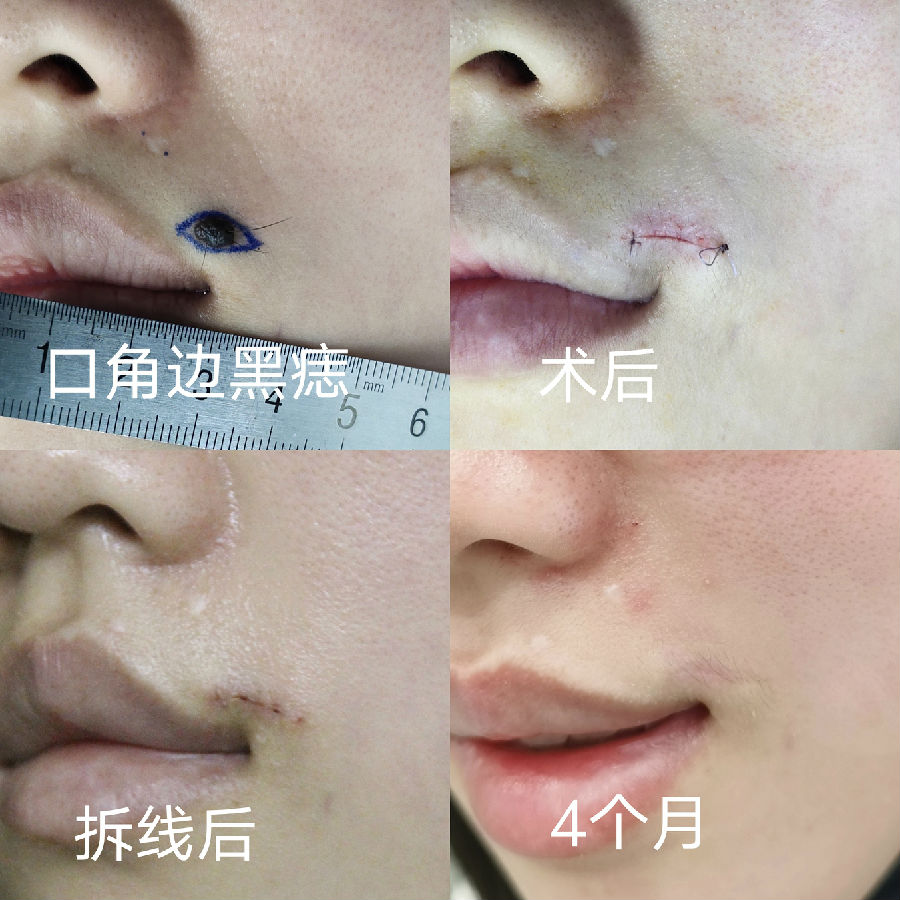 目前观察到的案例,这个部位的切痣疤痕比上下唇都恢复得又快又好,甚至比激光点痣后的疤痕都轻。