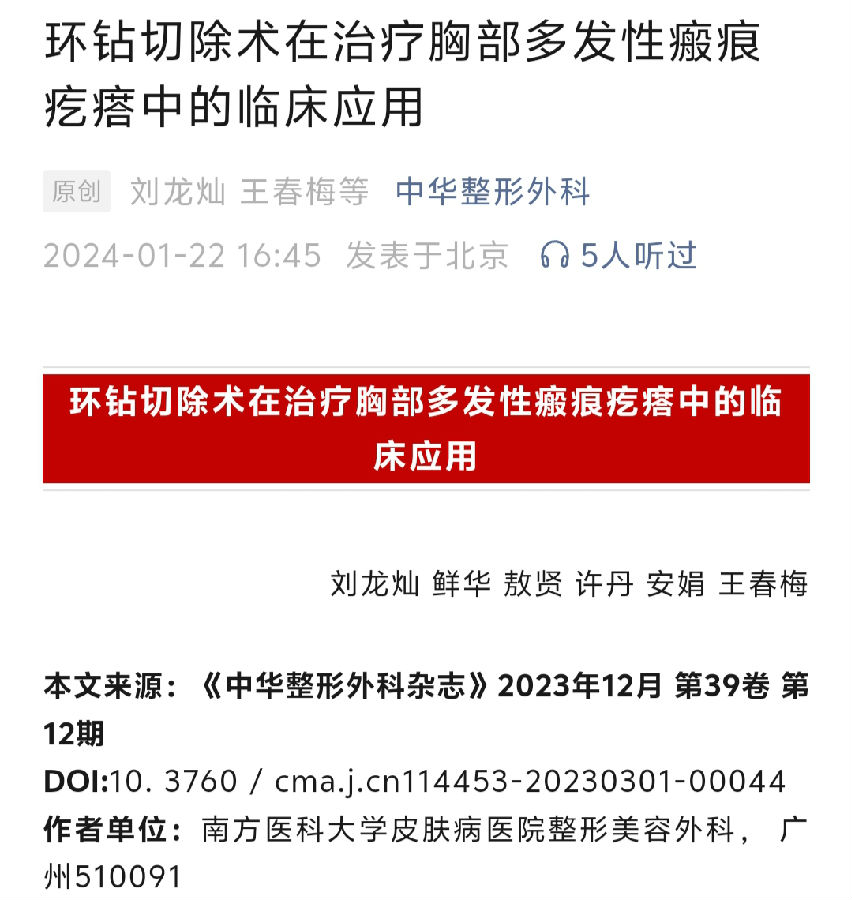 3近期报道的环钻切除+浅放治疗效果可靠,是一种值得尝试的方案。(并非所有瘢痕疙瘩均能获得治愈不复发!)