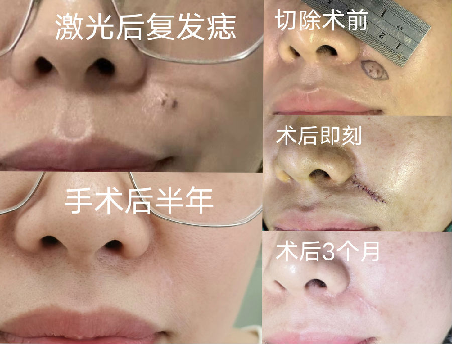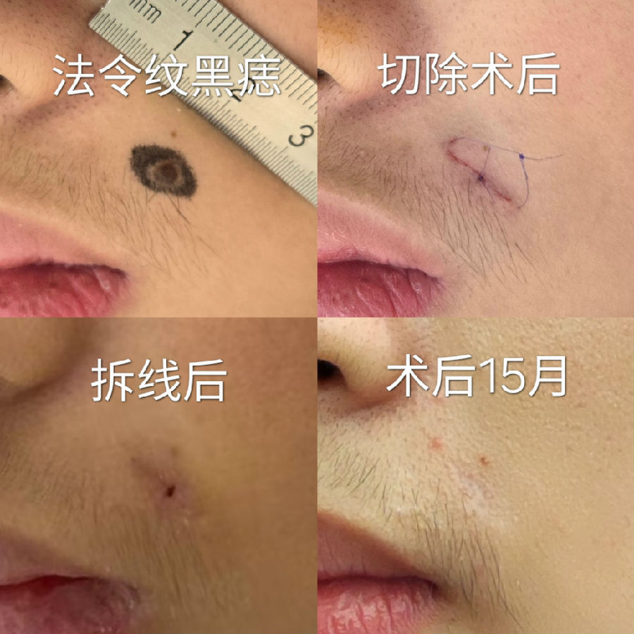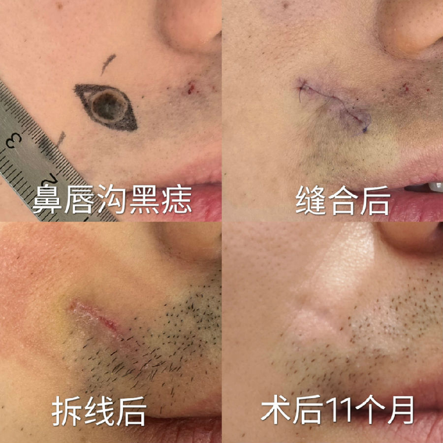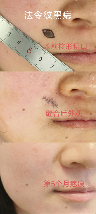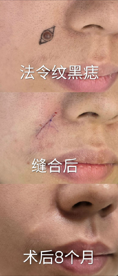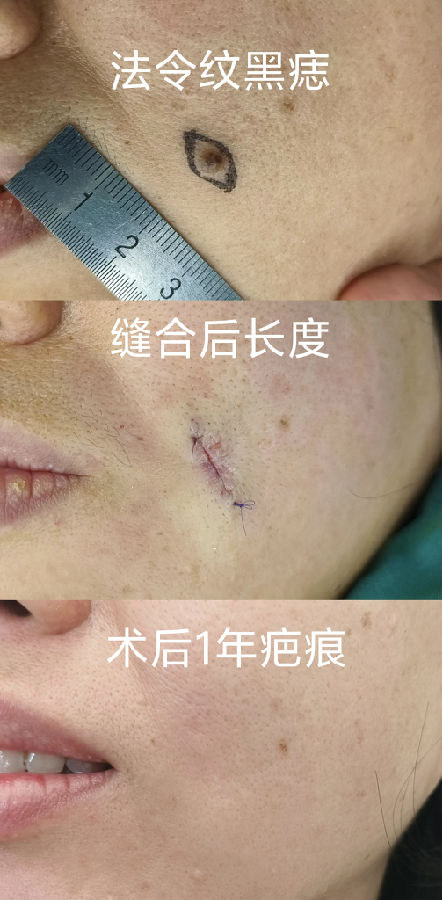 黑痣的生长方向,也影响刀疤的方向,蛮伤主刀医生的脑细胞,挺考验医生的经验。