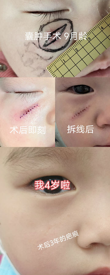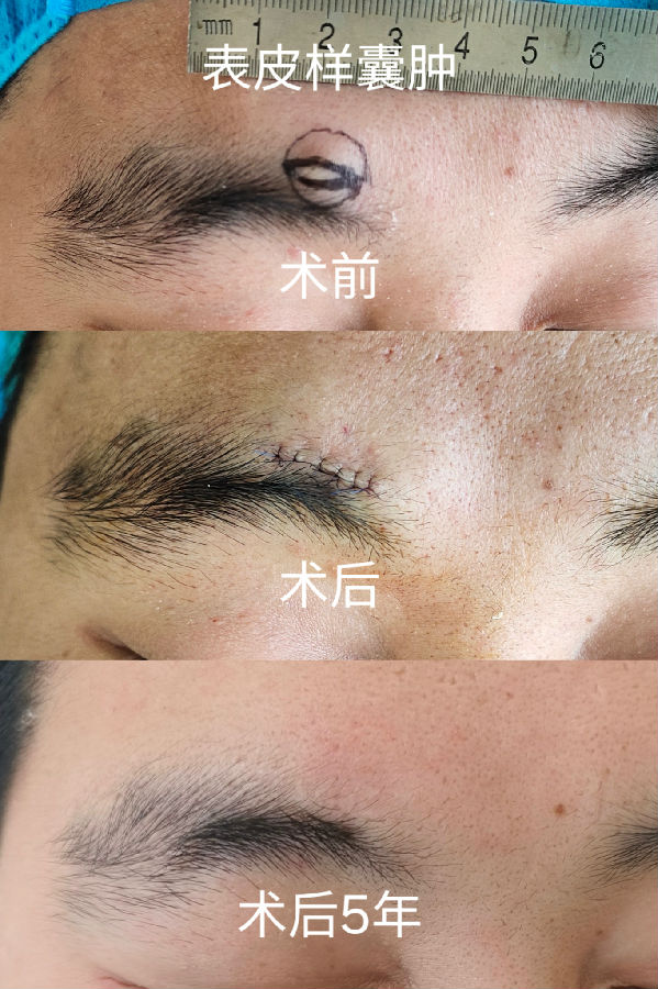 皮肤囊性肿块绝大部分终归需要手术切除,因此,在较小的时候尽早手术治疗才能让瘢痕最短小,而不是肿大到不可不手术了才想向老天求后悔药。