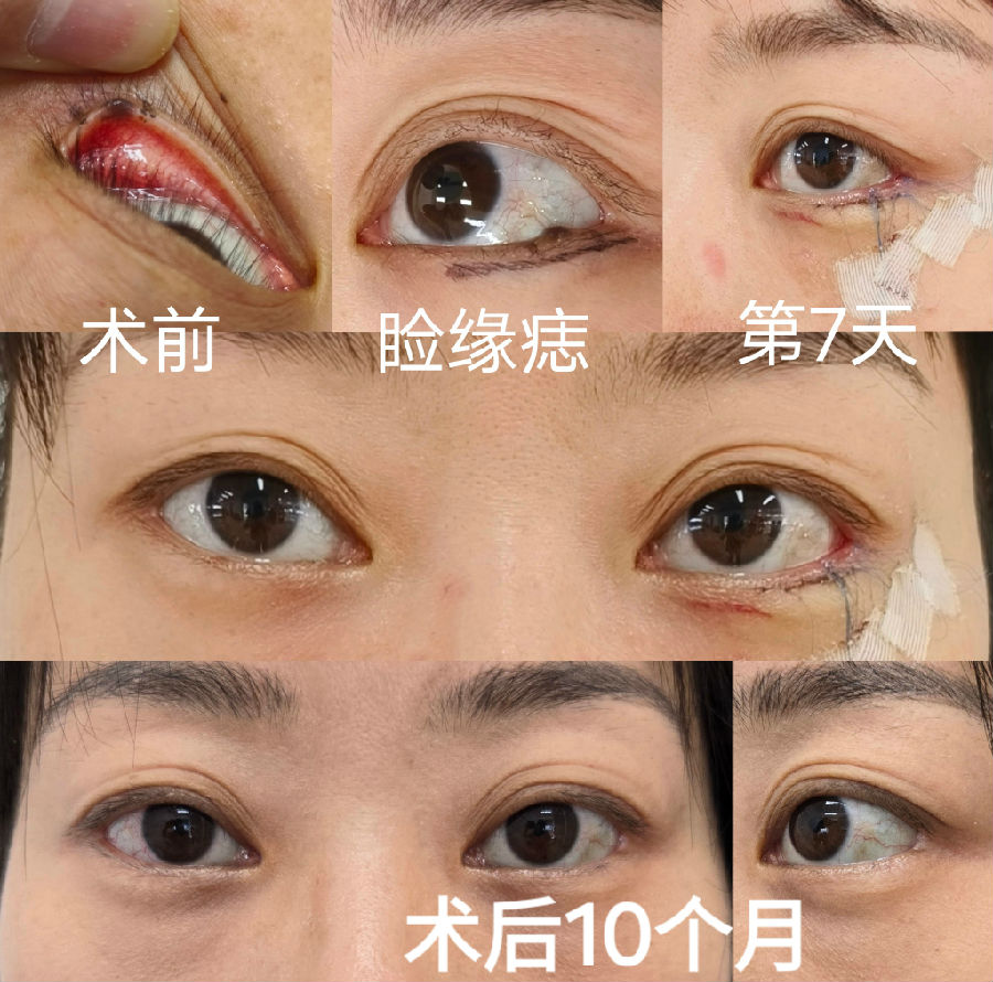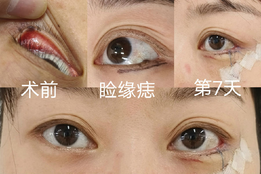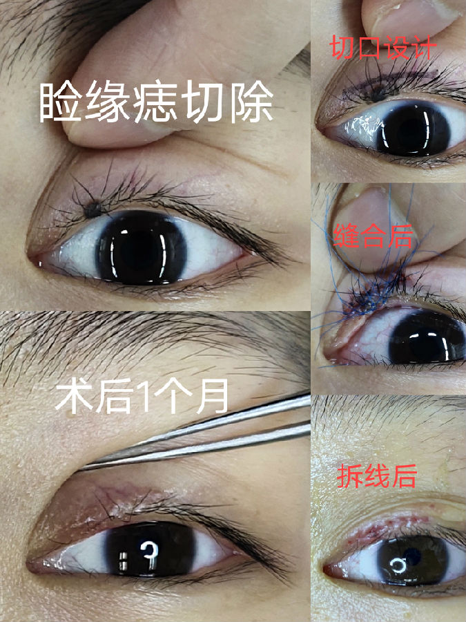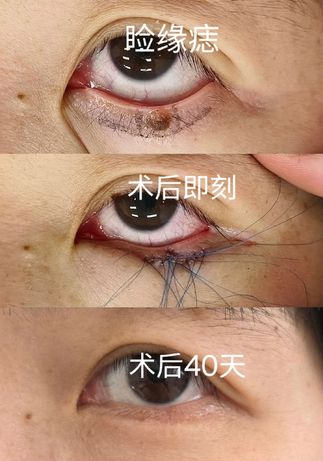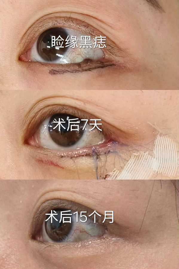 眼睑边缘的黑痣,一般都会缓慢增大,会影响视野,又不美观,建议尽早处理。手术中大部分病例需要行临近皮瓣修复,虽然切口较长和复杂,但最终瘢痕并不太明显。