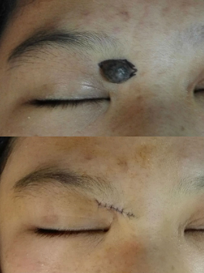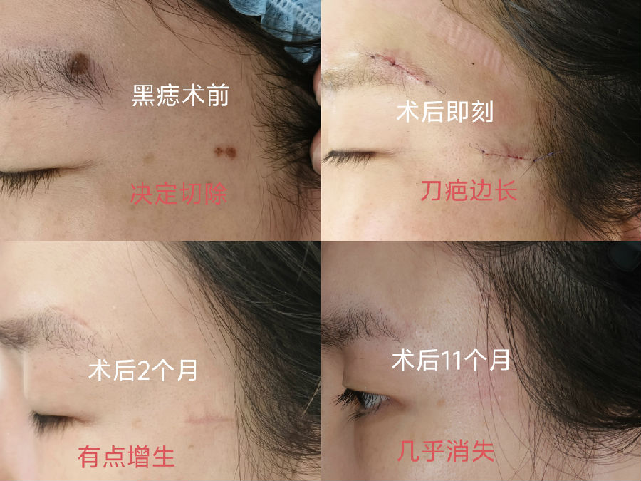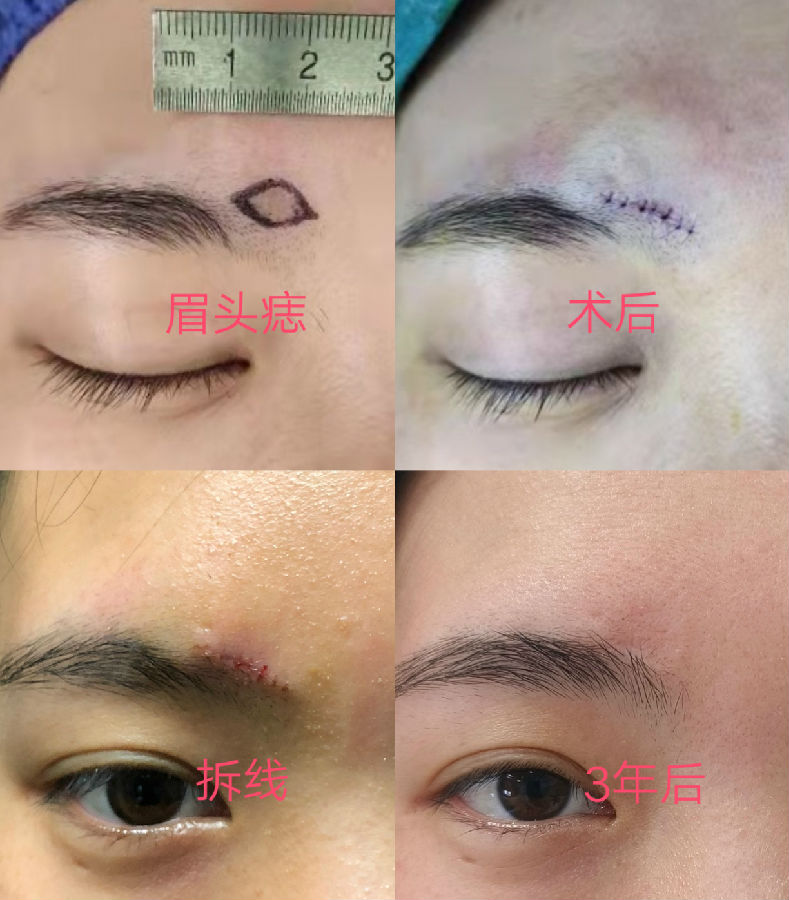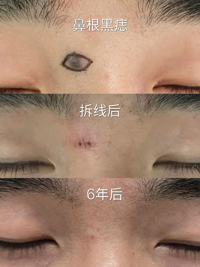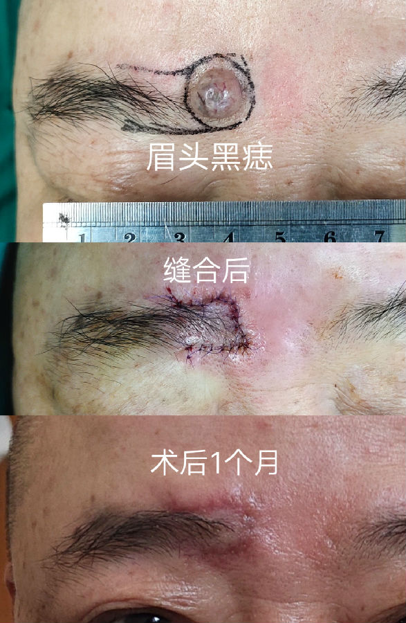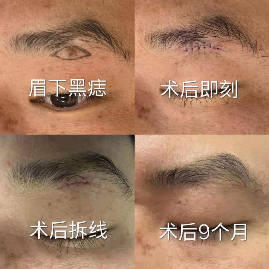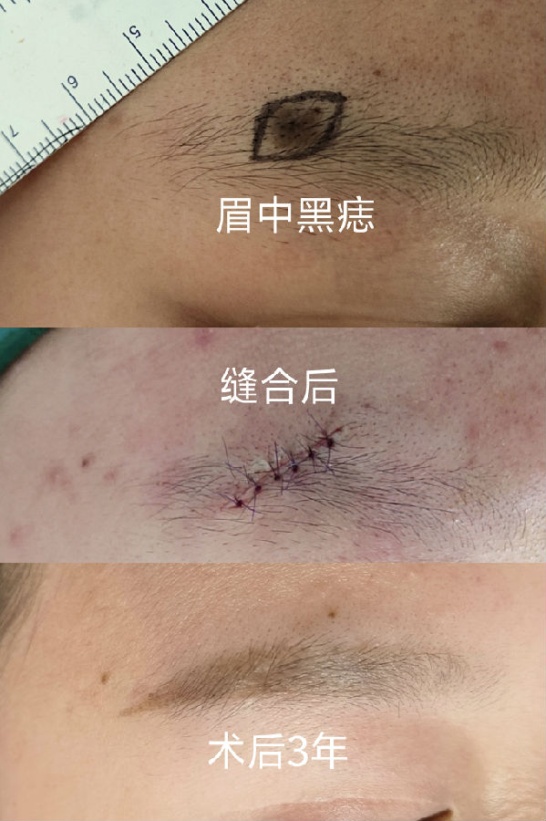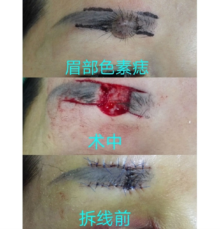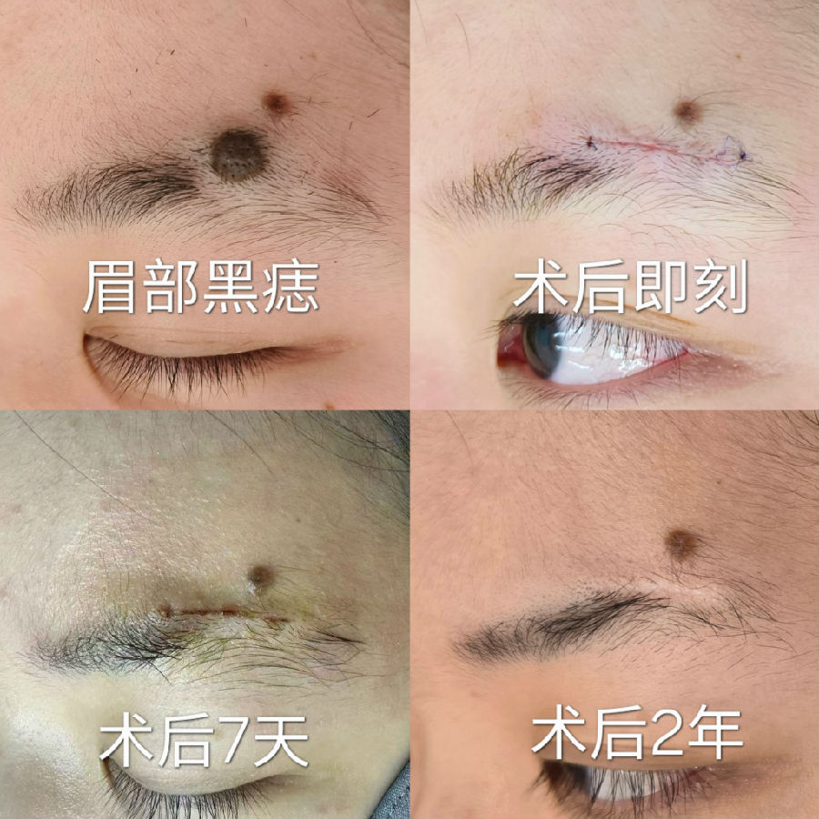 眉毛眉间上睑和印堂区域的黑痣常常生长较快,到三四十岁以后都比较大,影响美观,建议越小切除越不嫌早。