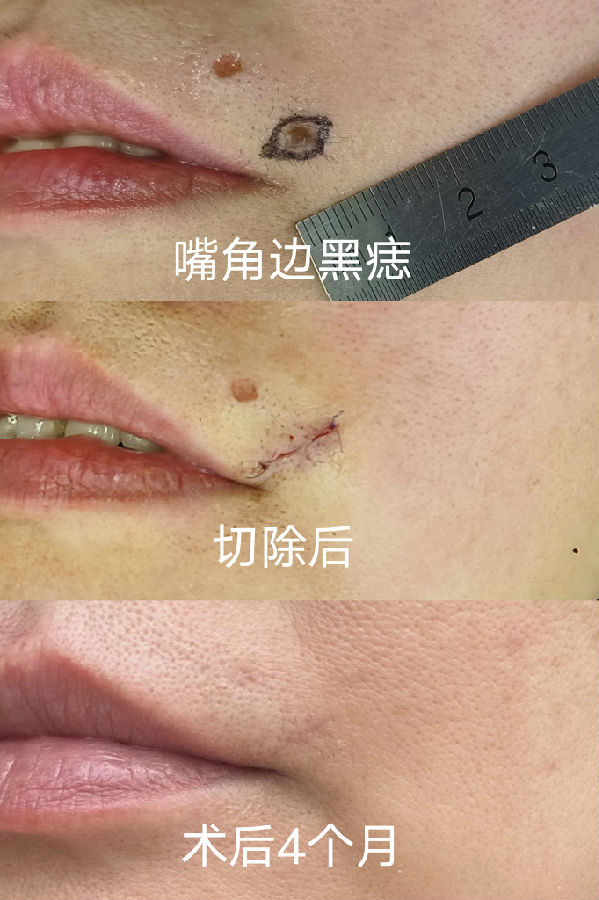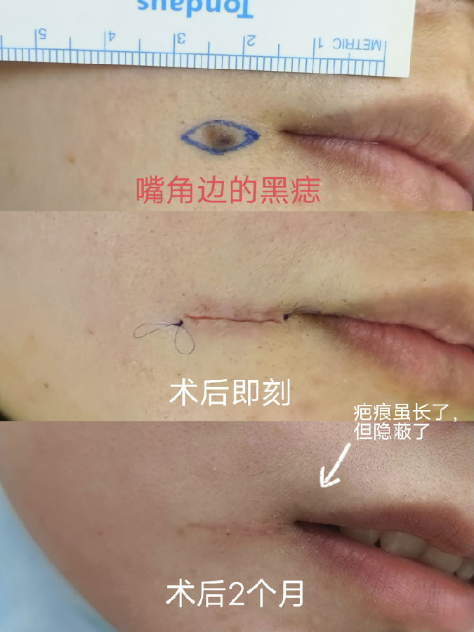 目前观察到的案例,这个部位的切痣疤痕比上下唇都恢复得又快又好,甚至比激光点痣后的疤痕都轻。