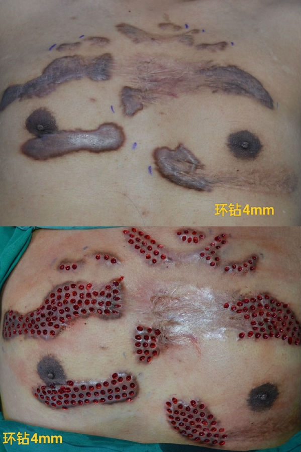 3近期报道的环钻切除+浅放治疗效果可靠,是一种值得尝试的方案。(并非所有瘢痕疙瘩均能获得治愈不复发!)
