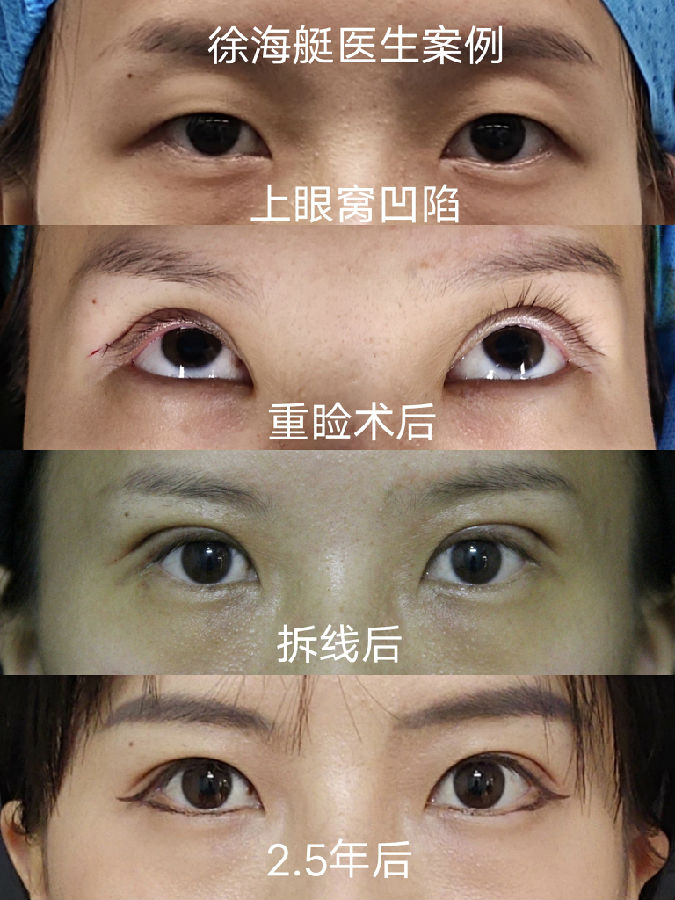 所以,经常会告知:双眼皮手术后,如果逐渐出现严重眼窝凹陷或三眼皮的话,需要做自体脂肪移植填充眼窝凹陷的手术。(希望各位一辈子不会需要。)