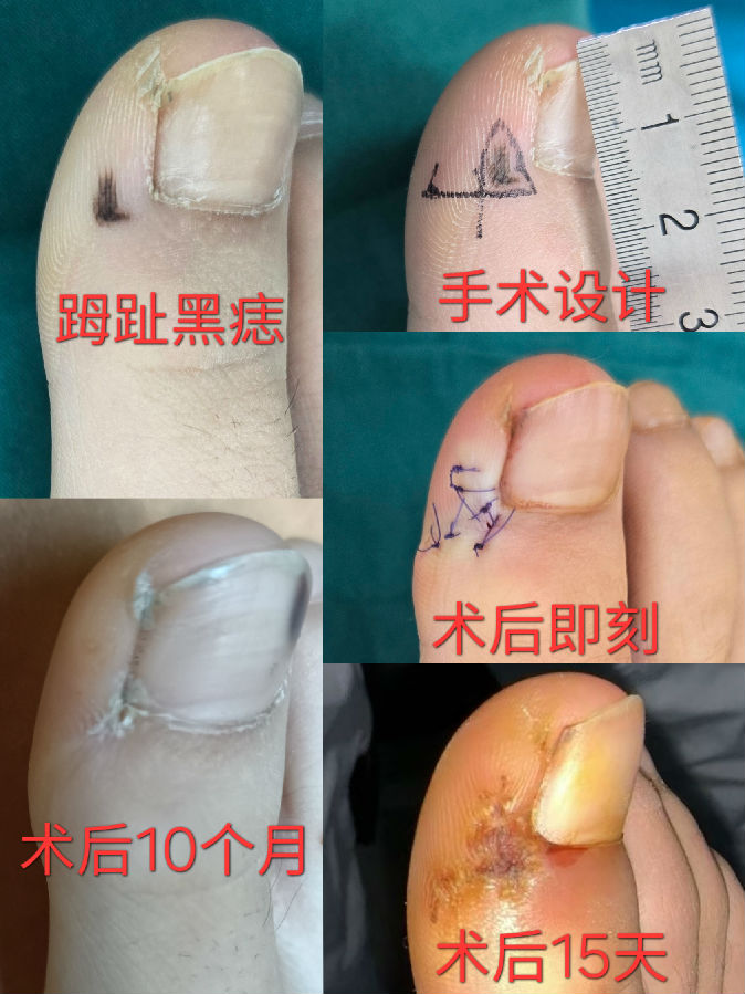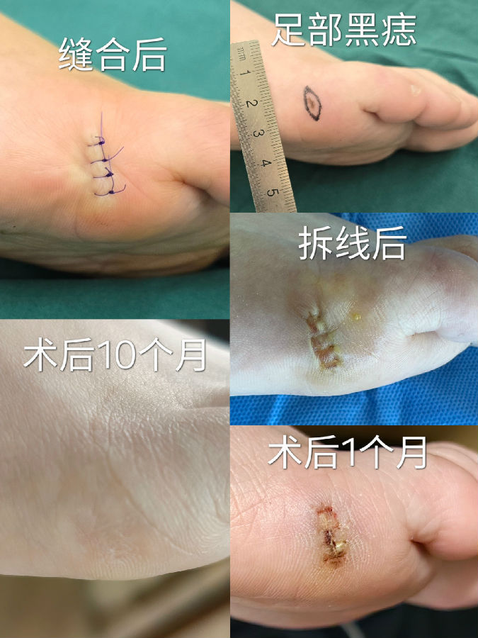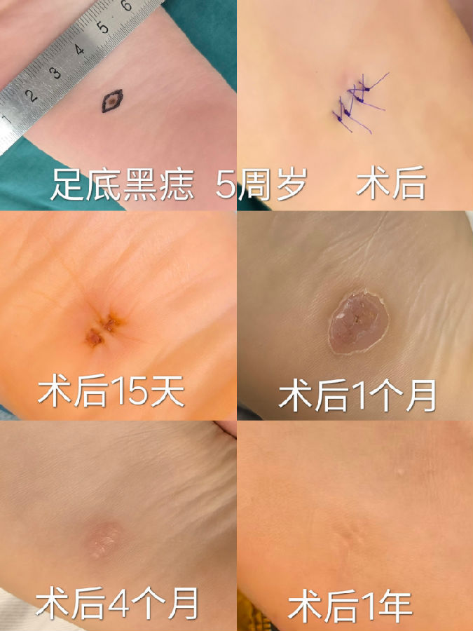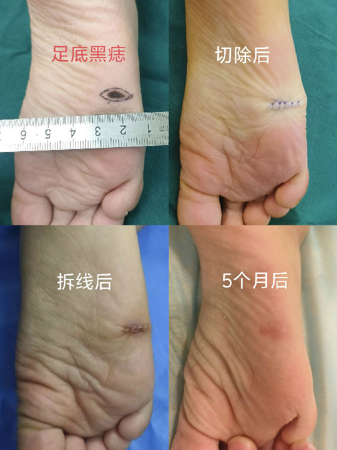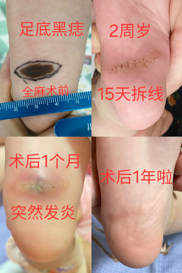 足底黑痣黑斑,建议更加积极的扩大手术切除,幼儿全麻,大人局麻。