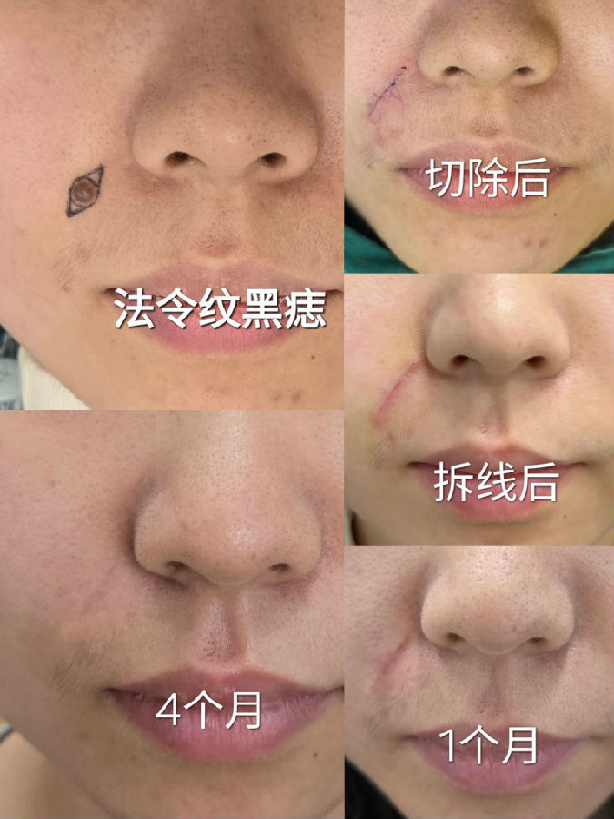 注意,越长在沟里面,疤痕也就越重叠在法令纹里面,就越隐蔽,反之疤痕还是容易看出来。