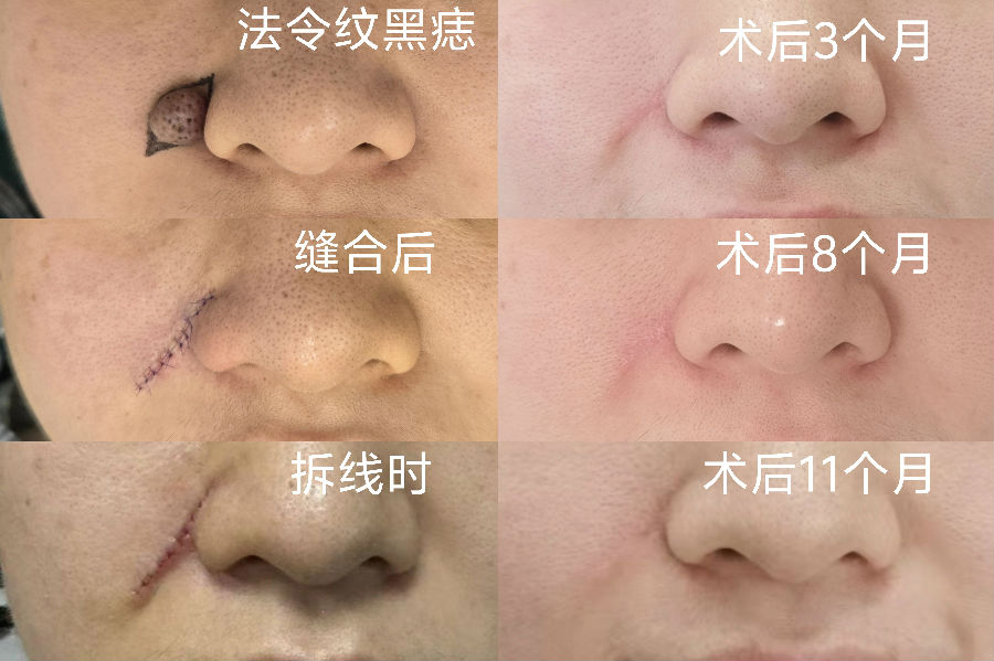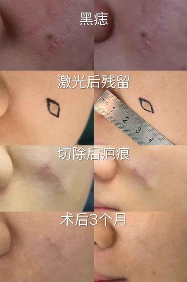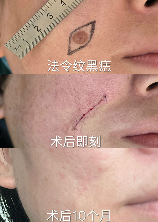 黑痣的生长方向,也影响刀疤的方向,蛮伤主刀医生的脑细胞,挺考验医生的经验。